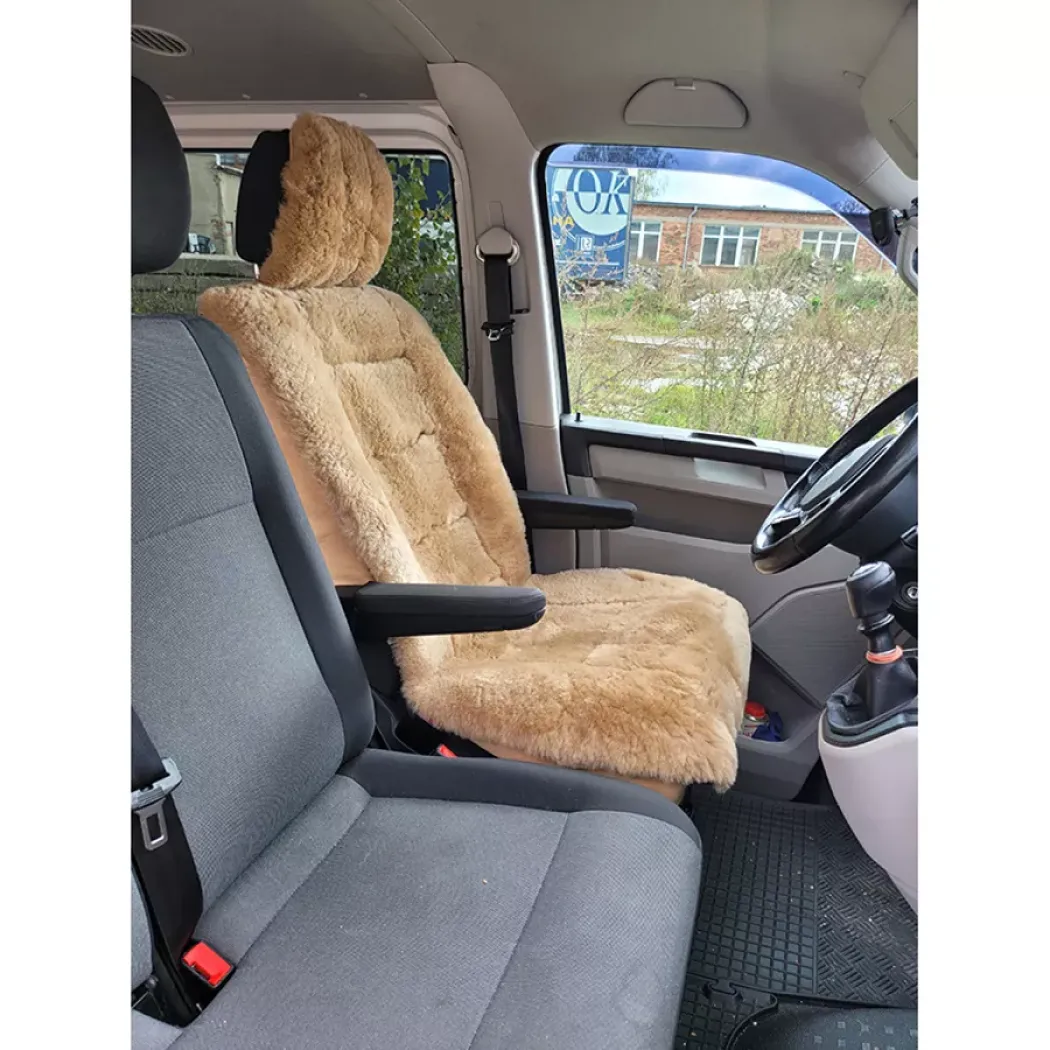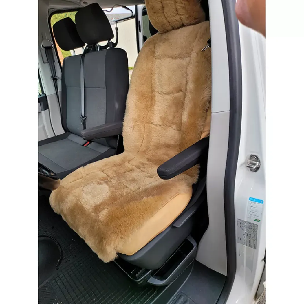Sedák do auta z ovčí kožešiny je vyroben z kvalitní ovčí kůže, která má výborné termoregulační vlastnosti. V zimě prohřívá a v létě chladí. Sedák z ovčí kůže lze upevnit a přizpůsobit na všechny druhy jednosedadlových sedaček v automobilu. V dolní části a zezadu má nastavitelné gumové popruhy a přesky na uchycení za opěrku a okolo sedadla, takže jeho uchycení je velmi jednoduché a přizpůsobitelné jakékoliv autosedačce. Kůže s ovčí vlnou je prodloužená až na opěrku hlav viz. obrázek.