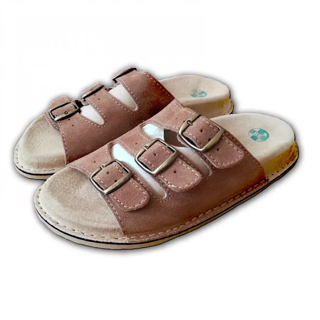 Ortopedické kožené pánské a dámské pantofle s nastavitelnými pásky. Podrážka obměkčená pryžová s tvarovou pamětí tlumící nárazy a anatomickým klenutím.