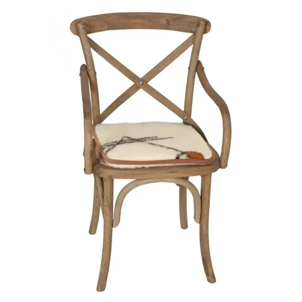 Podsedák na židli s motivem – podložka z ovčí vlny Praktický a pohodlný podsedák na židli s mnotivem je ideální volbou nejen pro každodenní použití v domácnosti, chalupě nebo chatě, ale také pro použití kempování v přírodě. Díky kombinaci 100% ovčí vlny a měkkého molitanu poskytuje výborný tepelný komfort, izolaci od chladu a příjemné sezení i po delší dobu. Vlněná podložka je prodyšná, přirozeně reguluje teplotu a je vhodná pro celoroční použití. Skvěle se hodí na dřevěné židle, lavice, zahradní nábytek nebo do chalupy.