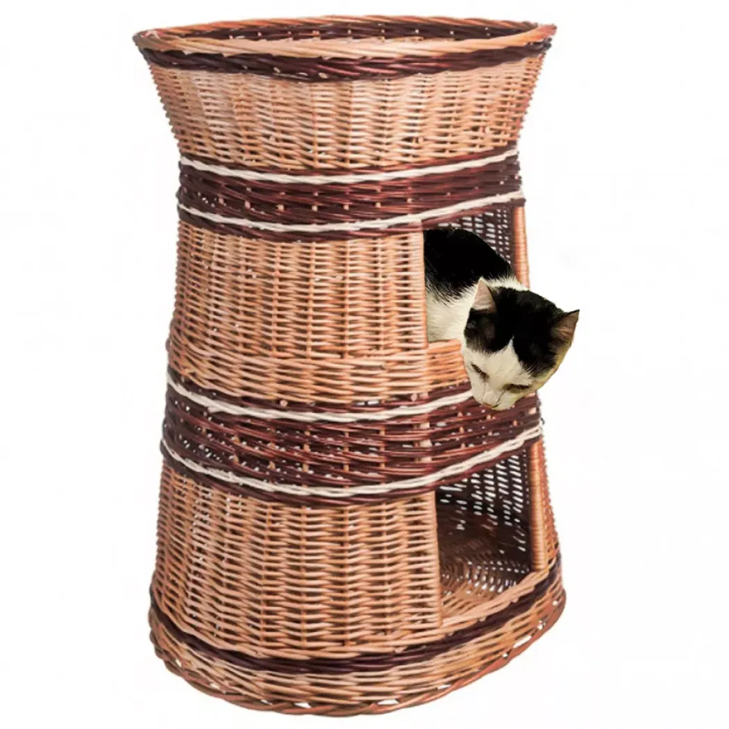 Dvoupatrový domek s pelíškem pro psy a kočky z přírodního proutí s místem ležení i na horní části. Zvířata se v proutí cítí velmi dobře a je jim dopřáván maximální komfort a pocity bezpečí. Vaše kočka nebo pejsek se bude ráda vracet do svého nového obydlí.