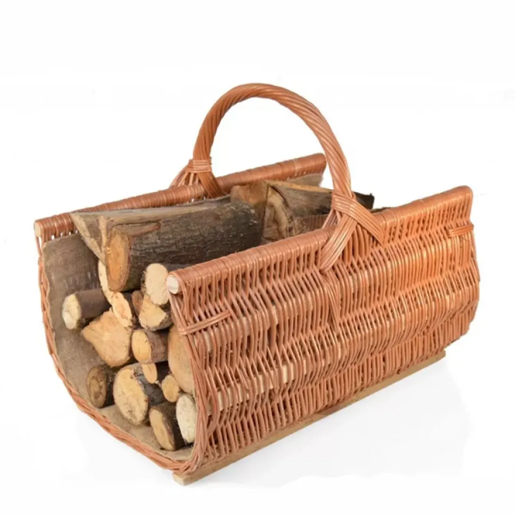 Velký proutěný koš na dřevo v obloukovém tvaru ke krbu je stylovým a odpovídajícím doplňkem domácího krbu nebo kamen. Přírodní materiál a přítomnost proutěného dřeva vytváří jedinečné, romantické duo. Pevná rukojeť a pevná konstrukce s dřevěnou výztuhou zaručují spolehlivost celé konstrukce. Pro výrobu koše byly použity pouze kvalitní přírodní suroviny. Uvnitř je košík ozdobený hustou jutovou tkaninou proti propadávání třísek.