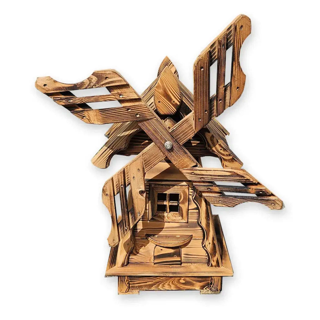 Zahradní větrný mlýn rustikální 120 cm – dřevěná dekorace s pohyblivými lopatkami Stylový dřevěný větrný mlýn v rustikálním provedení je originální zahradní dekorace, která dodá vaší zahradě, skalce, terase nebo chatě jedinečnou atmosféru. Díky výrazné kresbě dřeva a jemně opalovanému povrchu působí autenticky a přirozeně zapadne do venkovního prostředí. Zahradní mlýn je vyroben z kvalitního impregnovaného smrkového dřeva, které je odolné vůči povětrnostním vlivům. Precizní ruční zpracování zaručuje dlouhou životnost i vysokou estetickou hodnotu. Dominantou mlýna jsou pohyblivé lopatky, které se otáčejí ve větru a vytvářejí atraktivní dynamický efekt. Díky propracovaným detailům a konstrukci vynikne tato dekorace z každého úhlu pohledu a stane se nepřehlédnutelným prvkem vaší zahrady.